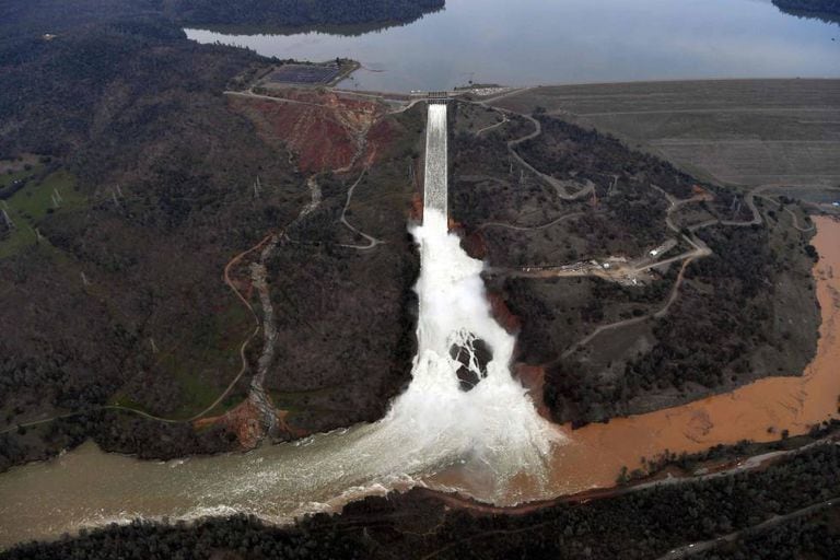 Os fatos registrados até o momento são os seguintes. As fortes chuvas que caíram sobre a Califórnia nos últimos meses, pondo fim a uma situação de extrema seca que vigorava em mais de 80% do estado, encheram as represas em níveis inéditos desde muitos anos. No caso do lago Oroville, a represa sobre o rio Feather, cerca de 75 quilômetros ao norte de Sacramento, teve suas comportas abertas para se esvaziar um pouco. A operação vinha sendo realizada havia alguns dias quando os engenheiros detectaram uma rachadura na rampa de descida da água que colocava em risco o conjunto da estrutura. No fim de semana, decidiu-se utilizar o deságue de emergência da represa, ao qual nunca se havia recorrido desde a sua construção, há cinquenta anos. Trata-se de um muro baixo, pelo qual a água pode transbordar a fim de aliviar a represa. Mas a água não cai para uma área canalizada como ocorre no caso do deságue principal, e sim em plena montanha. Pouco depois de começar a utilizar essa alternativa, a encosta da montanha, sob esse muro, começou a se desprender, formando fendas e buracos e arrastando rio abaixo todo tipo de escombros naturais que poderiam gerar grandes problemas. O maior perigo, agora, é que essa erosão acabe minando os próprios alicerces do muro e, com isso, derrubá-lo. Esse é o cenário do pesadelo: que a água represada em 10 metros de altura do lago avance sobre as populações da região. O que está em risco não é a represa em si, mas esse muro de contenção.