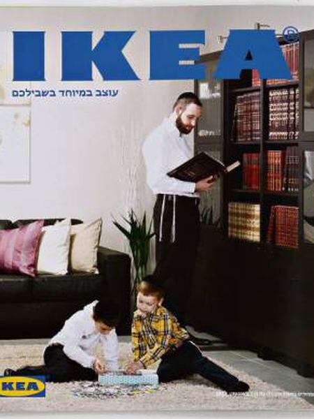 Uma máxima que, paradoxalmente, se encaixa perfeitamente na iniciativa da filial judaica, que também inclui a frase no catálogo criado para os ultrarreligiosos. Na capa da publicação polêmica, sob o slogan mundial na sua versão em hebraico, aparece um pai com trajes ultraortodoxos – calça preta, camisa branca sob a qual desponta um pequeno talit (xale), e quipá para cobrir a cabeça – folheando um livro diante de uma estante cheia de textos religiosos, na qual há também uma grande menorah (candelabro judaico). A seus pés, dois meninos brincam sobre um tapete no centro da sala. No interior do catálogo a história se repete na cozinha, com outra família também formada por três homens ortodoxos que se preparam para iniciar uma refeição, curiosamente com a mesa posta para quatro pessoas, enquanto o pai serve suco a um dos filhos.