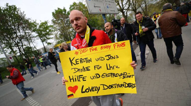 Após as três explosões que assustaram o Borussia Dortmund e toda a cidade, os torcedores da equipe alemã ofereceram suas casas aos membros da torcida do Monaco, que tinham planejado voltar para o principado na noite de terça-feira. Como a partida foi adiada para esta quarta-feira, às 13h45 (horário de Brasília), muitos visitantes não tinham feito reservas para dormir em Dortmund. Através do Twitter, com a hashtag #Bedforawayfans, os alemães ofereceram uma cama para que os torcedores alvirrubros passassem a noite e esperassem pelo jogo, válido pelas quartas de final da Champions League.
