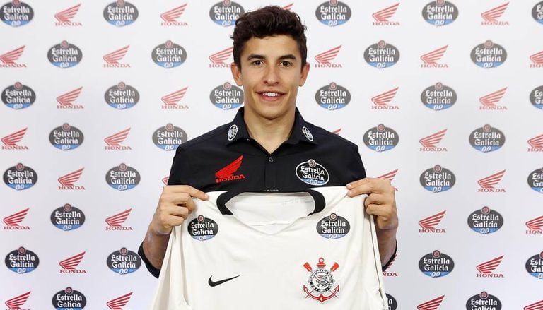 Em um evento da Honda, em São Paulo, ele posou com a camisa do Corinthians, patrocinado pela mesma cervejaria que investe na carreira do piloto desde seus 17 anos. Marc Márquez, que é torcedor do Barcelona, elogiou o clube paulista e, principalmente, sua torcida. “Sou fã de futebol e, como sempre acompanhei vários campeonatos, conheço o time há muito tempo. A torcida do Corinthians é incomparável. Acho fantástica a festa que eles fazem no estádio.”