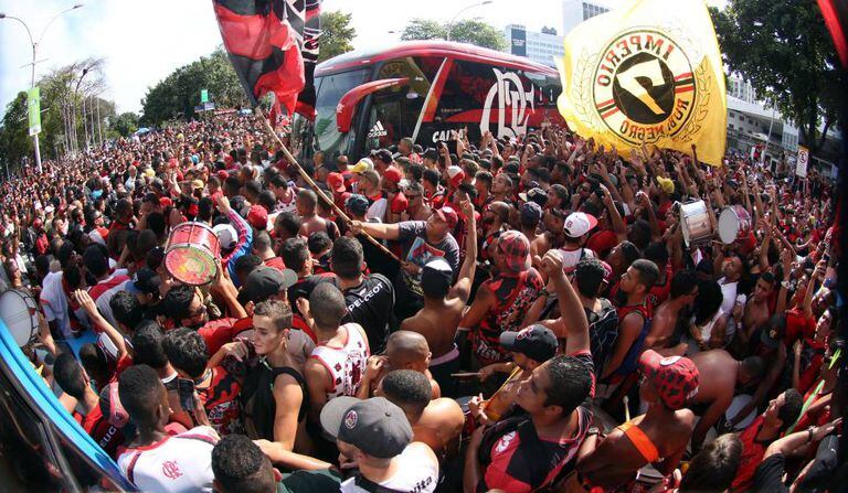 Não é de hoje que os rubro-negros protagonizam recepções grandiosas em aeroportos, como na chegada do folclórico Dadá Maravilha ao Santos Dumont, em 1973. Tal qual os corintianos, que entupiram o terminal internacional de Cumbica em 2012 para se despedir do time rumo à disputa do Mundial de Clubes. Mas as recentes manifestações de apoio dos torcedores ganharam corpo não somente em ocasiões especiais. Na última segunda-feira, por exemplo, milhares de torcedores do Flamengo foram ao Santos Dumont apoiar a delegação antes do embarque para Curitiba, onde a equipe enfrentou o Atlético-PR pela quarta rodada da fase de grupos da Libertadores – no desembarque na capital paranaense, cerca de 200 flamenguistas esperavam pelos jogadores no aeroporto Afonso Pena.