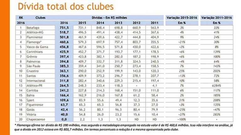 Em processo de reconstrução após o acidente de avião na Colômbia, a Chapecoense, finalista do Campeonato Catarinense, acumula mais um feito notável em sua história. É o único clube do Brasil que não tem dívidas. De acordo com levantamento realizado pelo consultor de marketing e gestão esportiva, Amir Somoggi, com base nos balanços financeiros divulgados pelos 20 clubes da Série A, referentes ao ano de 2016, a Chape zerou seus débitos – que batiam na casa dos 2 milhões de reais em 2015 – e acumulou uma receita total de 74,8 milhões, com incremento de 28 milhões em relação ao ano anterior. Um dos fatores que contribuíram para o aumento foi a premiação de 6,9 milhões pelo título da Copa Sul-Americana, cedido pelo Atlético Nacional. Embora seja o segundo clube da primeira divisão nacional que menos arrecadou, a equipe catarinense registrou superávit de 6,8 milhões no exercício.