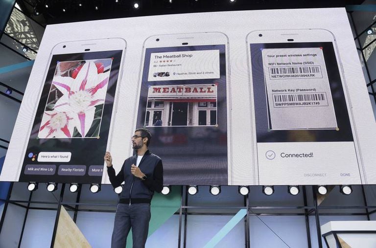 Sundar Pichai demonstra o poderio da inteligência artificial diante dos desenvolvedores da empresa na conferência I/O 2017