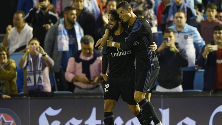 O time merengue está de bem com a vida. Não só Cristiano, em plenitude depois do plano de descanso que fez com Zidane. Isco também. Desde a contusão de Gareth Bale no clássico (23 de abril), o malaguenho jogou cinco partidas (340 minutos) e soma dois gols e três assistências. Um dos dois tentos foi marcado no Calderón na volta das semifinais da Champions. As últimas duas assistências foram dadas na quarta-feira para Cristiano Ronaldo. Uma, depois de uma interceptação quase na área; a outra, aguentando sem cair as entradas de dois rivais, chutando uma bola em profundidade. Graças ao resultado conquistado em Balaídos, o Real está a apenas um ponto do título espanhol.