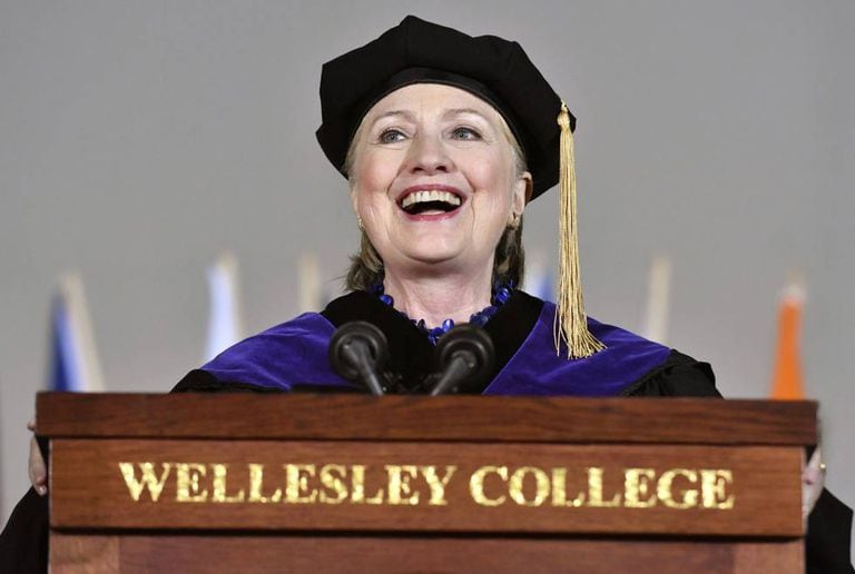 “Vocês se perguntam por que falo disto se nenhuma de vocês é parlamentar, responsável pelo algoritmo do Facebook ou dona de um canal de televisão, disse a democrata. Clinton atacou o orçamento “incalculavelmente cruel” defendido pelos republicanos, suas medidas anti-imigrantes e suas declarações contra as minorias raciais e religiosas, e instou as estudantes a lutarem por seus valores. “Quando os poderosos inventam os fatos e atacam quem os questiona, isso pode marcar o princípio do fim de uma sociedade livre. Não é um exagero, é o que temos visto os regimes totalitários fazerem.”