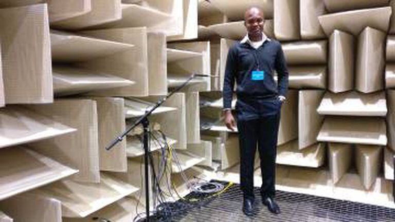 O limite do ouvido humano é de 0 decibéis. O recorde anterior era -9. A Microsoft conseguiu o título com -13, apesar de, durante a nossa visita, termos chegado a -20 decibéis. Gopal Gopal, o engenheiro de som indiano responsável pela sala, explica que o som de dois átomos que se tocam é de -23 decibéis. Uma referência difícil de assumir apenas com a imaginação. Ele foi o responsável por projetar, lançar e manter esta câmara tão peculiar.
