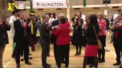 O candidato trabalhista das eleições britânicas, Jeremy Corbyn, conseguiu um bom resultado na quinta-feira, aumentando a representatividade de seu partido no Parlamento em 31 cadeiras em relação às últimas eleições. Todos viram sua felicidade assim que as pesquisas de boca-de-urna começaram a trazer o presságio de um resultado positivo. Com um sorriso, ele posou diante das câmeras junto à candidata trabalhista ao distrito de Islington (Londres), Emily Thornberry. Mas, quando tentou cumprimentá-la com um gesto de high five, eis o que aconteceu.