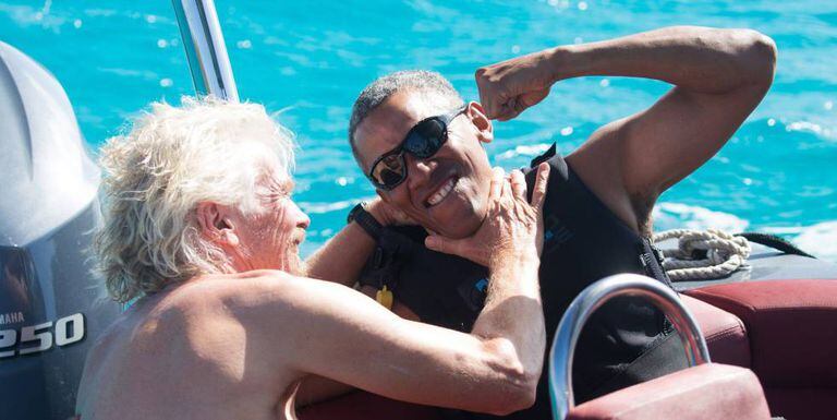 Previamente, e como descanso depois de oito anos de trabalho duro, muito duro, Obama saiu de férias passeando no iate do milionário David Geffer pela Polinésia Francesa – na companhia de celebridades como Tom Hanks e Oprah Winfrey – e praticando o desejado kitesurf com outro magnata, Richard Branson, dono da companhia aérea Virgin.