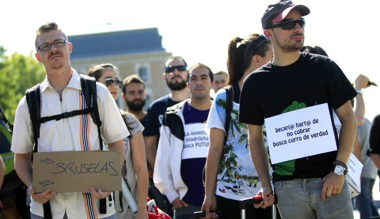 Os jovens que agora têm menos de 40 anos nasceram na democracia, então carecem dessas referências. Pertencem às gerações melhor preparadas da história, mas viram como a grave crise econômica que começou em 2008 não só freou abruptamente o elevador social, como os atingiu em maior medida que aos mais velhos. Com o correr dos anos, a recessão, dizem a eles, chegou ao fim e, no entanto, sua situação não melhora. O índice de desemprego juvenil continua sendo muito alto e os que trabalham têm de suportar altos níveis de precariedade. Ainda em 2015, com um crescimento do PIB de 3,2%, os salários dos abaixo de 39 anos continuaram a desvalorizar, diferentemente das faixas de mais idade. Estas resistiram melhor à crise e sua melhor posição relativa levou inclusive a inverter o sentido de solidariedade intergeracional: agora são os mais velhos que ajudam os jovens.