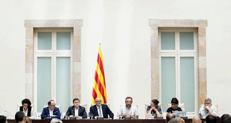 A cerimônia realizada no Parlamento teve a presença, basicamente, de integrantes da frente separatista. Juntamente com os deputados do Juntos pelo Sim e da CUP, estiveram presentes o vice-presidente da Generalitat, Oriol Junqueras, e os conselheiros Josep Rull e Raül Romeva. A maior parte da oposição se recusou a participar da apresentação da norma, que será aprovada apenas após as férias de verão na Europa. Apenas quatro membros do Podem participaram da cerimônia, um reflexo da divisão existente nas fileiras do Catalunha Sim Se Pode (CSQP). Apresentação desta terça-feira terá seguimento no Teatro Nacional da Catalunha, desta vez liderada por Puigdemont, presidente da Generalitat, em plena crise em seu Governo devido à renúncia na segunda-feira do conselheiro Jordi Baiget.