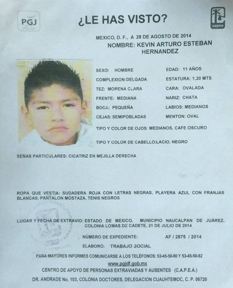 O dia em que meu filho Arturo desapareceu era uma segunda-feira, 21 de julho de 2014, e até hoje não sei nada dele. Tinha 11 anos. Nesse dia eu estava trabalhando e ele estava de férias. As pessoas do bairro onde moramos me disse que ele foi visto jogando bola com os vizinhos lá pela uma da tarde. Ele disse para a irmã que ia brincar e não voltou mais. Desapareceu, como se tivesse sido engolido pela terra. Ninguém viu.