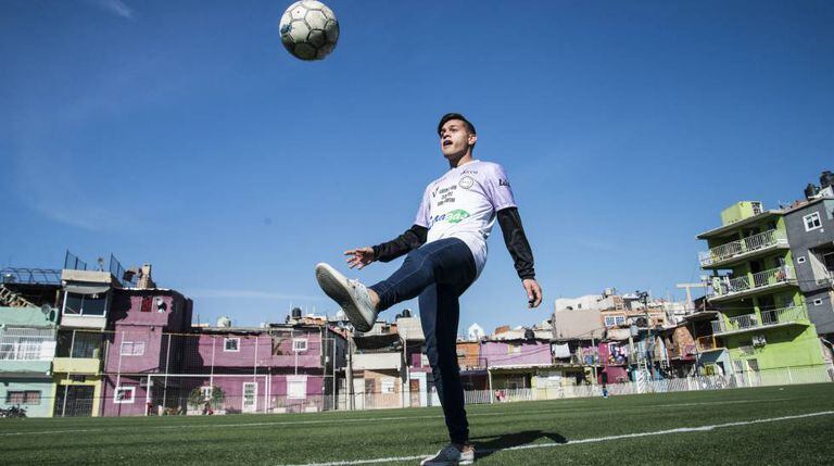 Ezequiel caminha pela Ciudad Oculta e não parece que nada de mal possa lhe acontecer. Conhece de cabeça os corredores da favela, estreitos e escuros como os de uma medina árabe. Em um dos muros se lê uma frase pichada: “Proibido fumar cachimbo”. A referência é clara, o inimigo de sempre: o consumo de crack, que acaba com a vida de jovens diariamente. A Villa 15, ou Ciudad Oculta, é responsável pela condenação de um traficante por causa da denúncia de mães organizadas. Há pouco tempo, foi abatido Nazareno, um jovem conhecido do jogador, pelas balas de um policial que o perseguia durante uma batida. Era outro moleque a mais entre aqueles que consumem drogas e roubam. Outro que nos domingos vão jogar bola ou tomar uma cerveja no grande ponto de encontro do bairro, o enorme campo de futebol que se estende na sobra do edifício Elefante Blanco, e que foi construído com o aporte milionário da fundação de Lionel Messi.