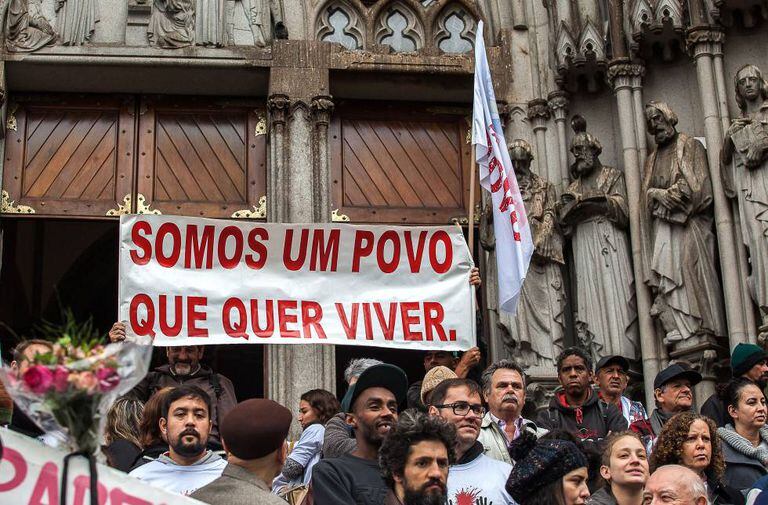 A catedral estava cheia, embora não lotada. O que é muito e pouco ao mesmo tempo. É muito, porque se tratava de um morador de rua, e, assim como na manifestação, misturou-se a classe média com o povo da rua nos bancos da igreja, numa composição rara. E quantas vezes esse país viu a classe média se mobilizar por um morador de rua? É pouco, porque a execução de um ser humano por um agente do Estado, se o pacto civilizatório vigorasse, deveria mobilizar uma multidão capaz de ocupar a região da Sé e uma reação grande o suficiente para parar o país. Mas é um corte no cotidiano de exceção que o Brasil vive. E isso é enorme.
