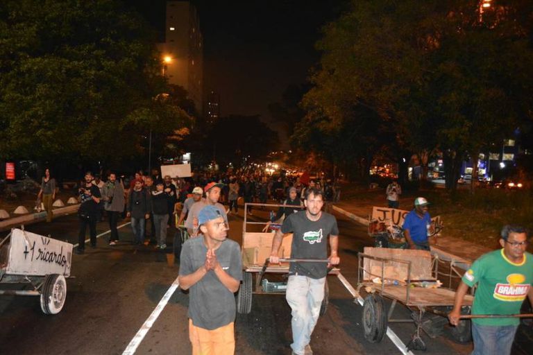 A primeira subversão aconteceu no dia seguinte. Diante do Pão de Açúcar, moradores de classe média e moradores de rua, gente de profissões variadas e catadores de material reciclável, se misturaram para um protesto. Havia gente de classes sociais diferentes, havia brancos e pretos, havia carroças.