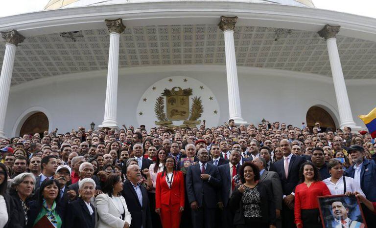 Sem encontrar resistência, os membros da Constituinte, leais ao Governo, trouxeram os quadros ao Salão Elíptico da sede cerimonial do Parlamento, em pleno centro histórico da capital venezuelana. Já tinham tirado desse espaço os deputados da Assembleia Nacional, ausentes. Além disso, chegam com a missão explícita de dissolver esse Poder, despojar seus adversários de seu foro de imunidade e pôr alguns deles na prisão. Para cumpri-la, alguns dos membros da Constituinte mal contam com 1.000 votos para seu mandato, como foi revelado em reunião realizada com representantes do chamado setor empresarial.