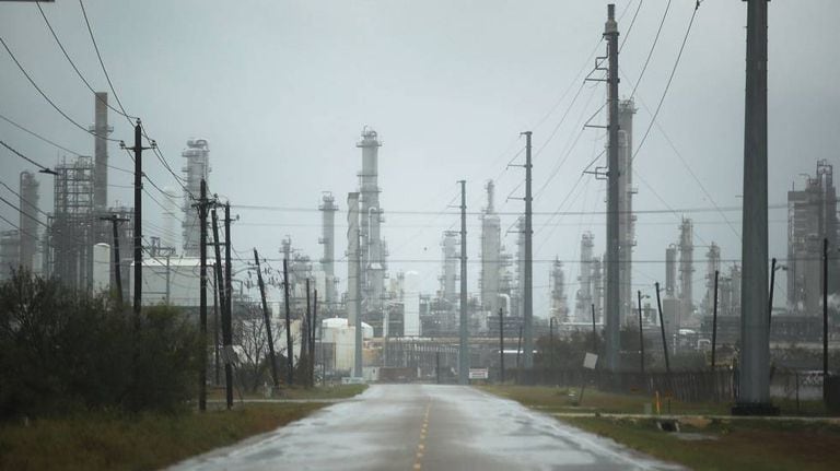 A maior refinaria dos EUA está localizada em Port Arthur, propriedade da saudita Arabian Oil, e tem capacidade para produzir o equivalente a 600.000 barris diários de combustível. A ExxonMobil opera em Baytown, a segunda maior, que processa 560.000 barris. Há uma dúzia de refinarias inoperantes em Houston, Galveston e Corpus Christi, que produzem 2,2 milhões de barris, incluindo instalações de Shell, Valero, Citgo e Petrobras.