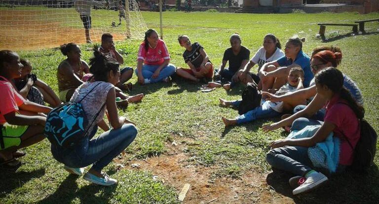 Nesse cenário, Sidineia e as irmãs decidiram fundar no começo do ano passado o Perifeminas, que tem o nome inspirado em um livro assinado por mulheres ligadas ao hip hop e pode ser interpretado mais como um movimento do que simplesmente um time de futebol. Elas queriam que o esporte fosse o gatilho para mobilizar a parcela feminina da comunidade em torno de discussões que ainda não reverberam em muitos lugares da periferia. Além da disputa de jogos, passaram a promover a partir de março deste ano rodas de conversa sobre empoderamento, sexualidade, sororidade e igualdade de direitos com integrantes da equipe e mulheres da região. Ocasiões em que muitas acabam confidenciando traumas ou episódios de violência doméstica. Os encontros carregam o espírito de equipe do campo para se converterem em um ambiente de acolhimento e apoio mútuo. Eles acontecem à beira dos gramados, em saraus de poesia e sessões de leitura na biblioteca comunitária, em que são discutidos livros de autoras como Simone de Beauvoir e Chimamanda Ngozi Adichie. “O futebol tem um grande poder de mobilização. Resolvemos utilizá-lo como uma maneira de atrair a atenção de outras mulheres e transformar a comunidade onde vivemos em um lugar menos repressor à nossa figura”, diz Sidineia.