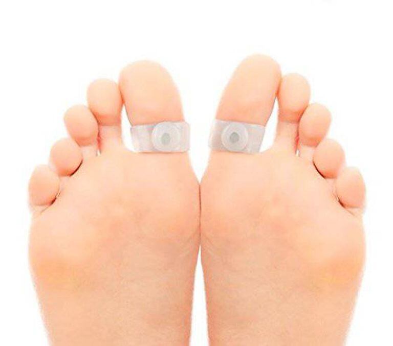 Se você é uma pessoa discreta e não quer cegar todo mundo com as suas Swarovski, pode comprar anéis magnéticos de silicone, que são colocados nas falanges dos dedões do pé.