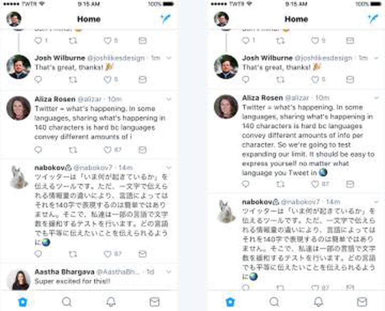 A mudança vai ocorrer apenas em alguns perfis, mas não especificaram quais: “Queremos que todas as pessoas ao redor do mundo possam se expressar facilmente no Twitter, por isso estamos fazendo algo novo: vamos testar um limite maior de caracteres, 280, para os idiomas afetados pela necessidade de comprimir ideias (que são a maioria, exceto japonês, chinês e coreano). Apesar de que só estará disponível para um pequeno grupo de pessoas, queremos ser transparentes e contar por que estamos tão animados com esse teste”.
