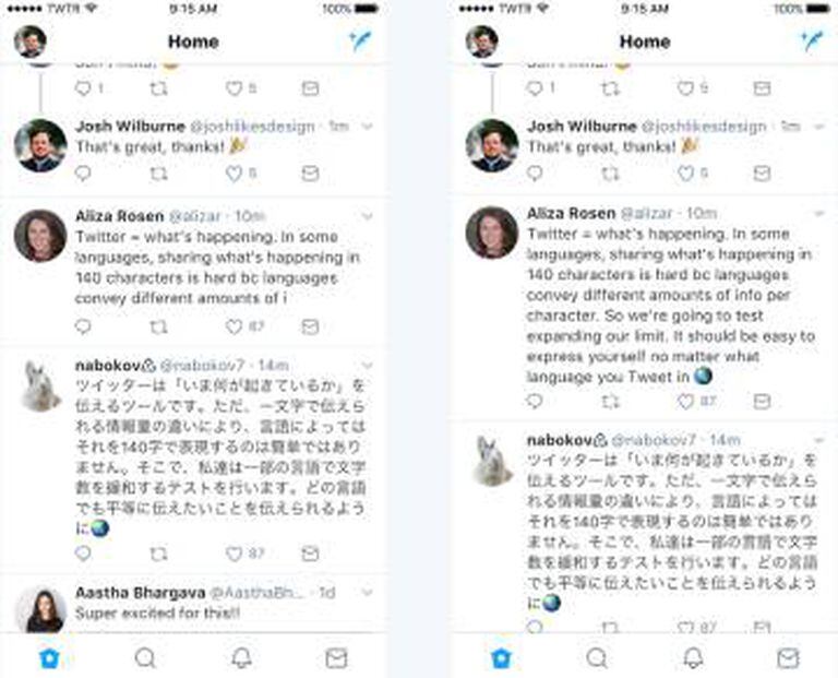 Desde sua criação, o Twitter oferecia 140 caracteres por tuite, uma limitação que serviu para promover a criatividade e criar uma linguagem própria, mas também foi um impedimento para sua adoção em diferentes países e culturas. 140 caracteres não representam a mesma coisa em espanhol, alemão, inglês (o idioma original dos fundadores e do serviço) e japonês, onde quase é possível contar uma notícia.