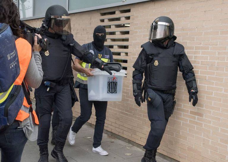 Das aproximadamente 10.000 urnas que foram encomendadas à empresa chinesa Smart Dragon Ballot Expert, que vende pelo site de comércio on-line chinês Alibaba, a polícia só apreendeu quatro, ainda assim apenas minutos antes de que chegassem a seu destino. Foram confiscadas no carro onde iam escondidas para um colégio de Barcelona. Foram as únicas intervenções policiais antes do pleito realizadas no mais símbólico dos elementos da votação. Nas vésperas, as Forças e Corpos de Segurança do Estado haviam recolhido mais de 12 milhões de cédulas de votação, além de todo tipo de documentos que seriam repartidos nas mesas e de numerosos cartazes incentivando a participação no referendo e o sim pela separação.
