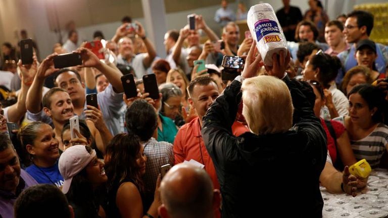 Trump joga rolos de papel para vítimas do furacão Maria em Porto Rico