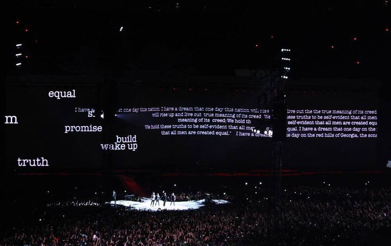 Na mesma mesma quinta-feira, horas antes, uma manifestação em São Paulo se via obrigada a defender uma exposição sobre sexualidade no principal museu do país, o MASP, ante a onda conservadora recente contra as artes. O U2 deve ter ouvido falar do movimento e, como uma visita gentil que pergunta se está tudo bem com os anfitriões, resolveu incluir o tema. Com sorte, alguém lhes falou também de Odiolândia, a exposição de Gisele Beiguelman, no Sesc 24 de Maio, que recolhe comentários nauseantes da Internet que defendem o extermínio dos humanos da cracolândia.