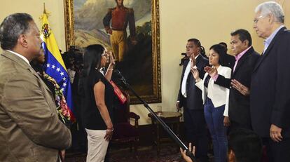 Envolvidos na polêmica, Laidy Gómez (Táchira), Alfredo Díaz (Nueva Esparta), Ramón Guevara (Mérida) e Antonio Barreto Sira (Anzoátegui) reuniram-se com Delcy Rodríguez, presidenta da ANC, Elvis Amoroso, seu vice-presidente, e o secretário e subsecretário do conselho. “Eles juramentaram e se subordinaram”, escreveu depois no Twitter Rodríguez, ex-ministra de Relações Exteriores da Venezuela, com a satisfação de alguém que derrota um adversário.