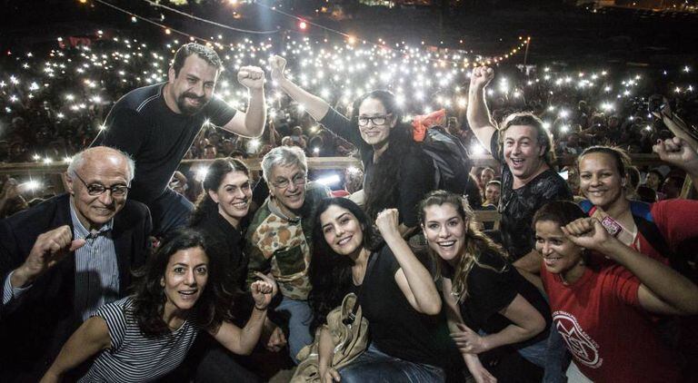 Nem a lama, a barreira policial, a localização complicada ou a decisão judicial impediram uma procissão de subir o morro da Ocupação Povo Sem Medo de São Bernardo, região metropolitana de São Paulo, para ouvir Caetano Veloso cantar na noite de segunda-feira. Munidos de saquinhos plásticos com alimentos perecíveis, a serem doados para o acampamento do Movimento dos Trabalhadores Sem-Teto (MTST), a multidão se reuniu em frente a um palco improvisado em uma colina, uma espécie de clareira ao lado dos milhares de barracos de lona preta, azul e amarela perfeitamente enfileirados por toda a extensão do terreno.