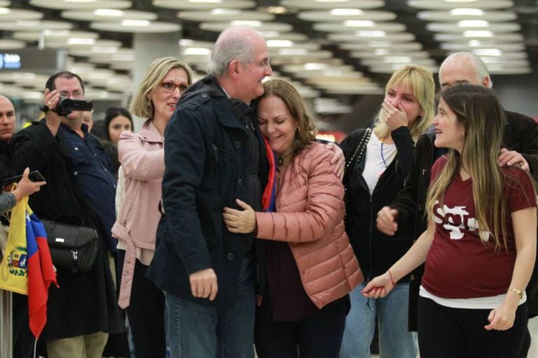 Era esperado no aeroporto por sua esposa Mitzy Capriles e suas duas filhas, Miitzy e Antonietta, essa última grávida. A família afirmou que não sabia nada dos planos de fuga de Ledezma até o último momento. “Nunca nos deixou a par, até o final não sabíamos que viria”, disse sua mulher, que há tempos vive em Madri.