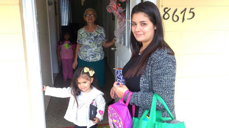 Enquanto isso, elas moram na casa da avó paterna de Nadja, María Rosa Torres, de 74 anos. Com um sorriso, a senhora abre a porta da casa térrea em um típico bairro suburbano americano quando mãe e filha retornam ao anoitecer do centro de ajuda da CASA, onde a pequena ganhou dois bichos de pelúcia, um cachorro colorido que tem a língua de fora e uma boneca que imediatamente batizou de “Princesa”.
