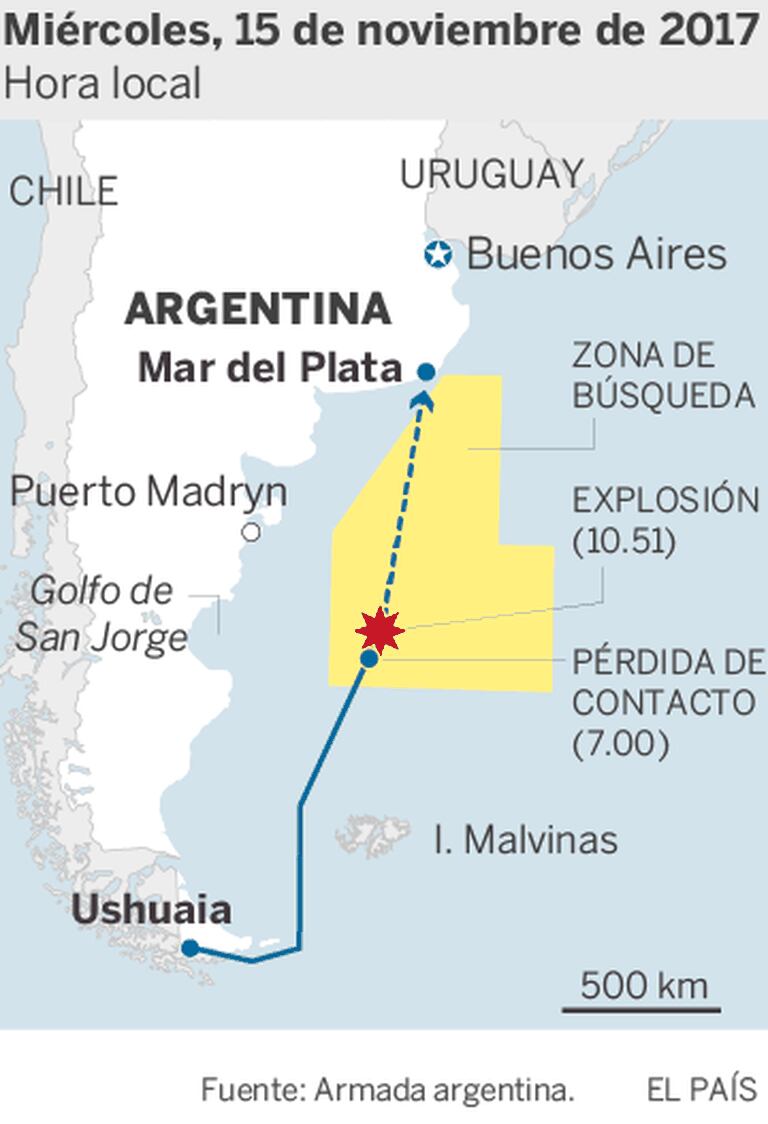 A emergência na busca do submarino desaparecido deixou em segundo plano a crise política que se vivia na Argentina entre o Governo e a cúpula militar. Mas a quase certeza de que a embarcação explodiu devolveu o protagonismo a essa crise. A Marinha argentina se defende das críticas e afirma que o submarino estava em perfeitas condições para navegar. Mauricio Macri prometeu uma investigação “a fundo” para descobrir por que explodiu e estava confiante de que conseguirão encontrar a embarcação “nos próximos dias”. Os analistas argentinos indicam que assim que a crise diminuir o presidente demitirá a cúpula da Marinha, que no Governo é acusada de má gestão e de ocultar-lhe informações. Mas, por enquanto, a prioridade é buscar o casco e frear o mal-estar das vítimas.