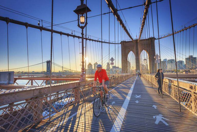 Toda a cidade de Nova York é apta para bicicletas, desde os amplos boulevares do Central Park, fechados ao trânsito por grande parte do dia, até uma crescente rede de ciclovias que cruzam monumentos icônicos e pontes, apesar de os visitantes só aproveitarem isso em parte. Poucos se aventuram para além do extremo oposto da ponte do Brooklyn e é uma pena. A autêntica joia ciclista é Manhattan Waterfront Greenway, uma rota que serpenteia por quase toda a ilha por 50 maravilhosos quilômetros e convida a pedalar explorando outras zonas da cidade pelas pontes que unem Manhattan aos bairros externos, como a típica passarela de madeira da ponte do Brooklyn, ou a mais antiga (e mais recente ao mesmo tempo) High Bridge, entre Harlem e Bronx, original de 1848, quando se construiu para ser aqueduto e que conduz pedestres e ciclistas por cima do rio Harlem.