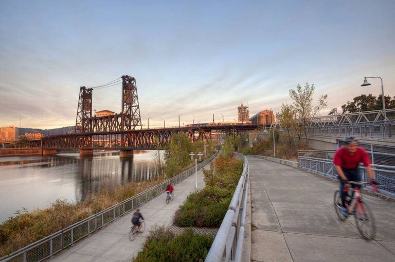 Se existe uma cidade norte-americana que imita o modelo de Copenhague é Portland (Oregon), na costa do Pacífico, onde não faltam nem chuva nem bicicletas de carga. Eclética, sustentável e independente, famosa por seu café e sua cerveja artesanal, em 2015 Portland colocou em marcha um sistema de bicicletas compartilhadas, o Biketown, que conta com 600 bicicletas e estações por toda a cidade. Já existem mais de 560 quilômetros de vias para bicicletas, incluídos os 18 do Waterfront Loop, junto ao rio Willamette. Podemos visitar os arredores seguindo o Willamette Valley Scenic Bikeway (de 201 quilômetros), que adentra pela famosa região vinícola do Oregon, ao sul da cidade de Portland.