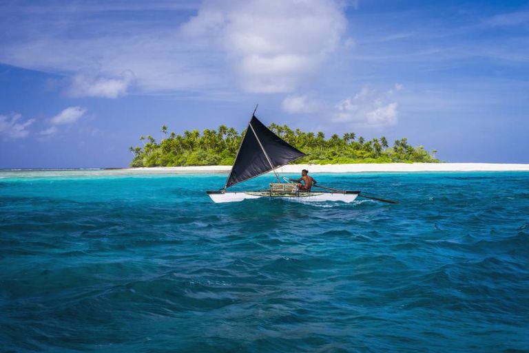 Traçando uma curva de ambos os lados do equador, a República de Kiribati inclui as ilhas Tarawa, Gilbert, Fênix e a Linha. Se medirmos sua superfície, é um país microscópico, com pouco mais de 811 quilômetros quadrados; no entanto, seus 33 atóis se espalham por uma área de 3,5 milhões de quilômetros no oceano Pacífico, em sua maioria rodeados de lagoas turquesas, pouco acima do nível do mar.