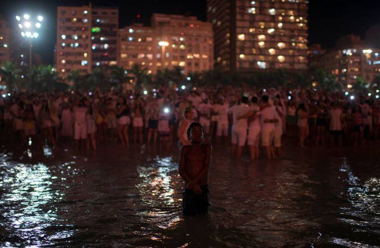 Um menino negro, na beira do mar, admira de olho grande e boca aberta os fogos da virada do ano na praia de Copacabana. Está aparentemente sozinho, veste uma bermuda molhada, com os pulsos entrelaçados na altura do umbigo, enquanto em outro plano, na areia, a massa vestida de branco comemora a entrada de 2018. Alguns dão as costas ao menino, ao mar e aos fogos para tirar suas selfies, e outros comemoram absortos o espetáculo. A imagem em preto e branco, tirada pelo fotógrafo Lucas Landau para agência Reuters, está tomando as redes sociais de milhares de brasileiros com infinidade de legendas diferentes. A fotografia fala de um menino negro de nove anos numa praia durante uma festa, mas, vista a repercussão, fala também de como a interpretamos.