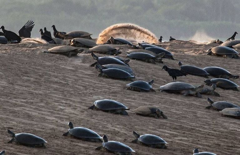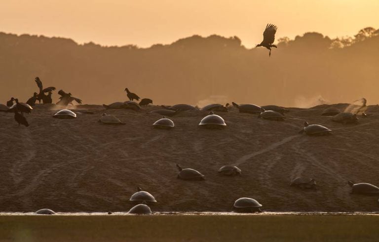 É criminoso. A caça de tartarugas-da-amazônia (Podocnemis expansa) é proibida. Apenas a população ribeirinha, se em determinado momento não tiver outra fonte de proteínas disponível, pode capturar uma tartaruga para dar alimento à sua família. E apenas nessas circunstâncias. Mas o que é a lei nesse momento do Brasil? Se humanos são mortos impunemente, o que resta para as tartarugas-da-amazônia? Essas mães são vendidas para restaurantes, viram prêmio em competições, chegam a valer 200 reais no mercado ilegal à luz do sol. Sua vida é assim interrompida.