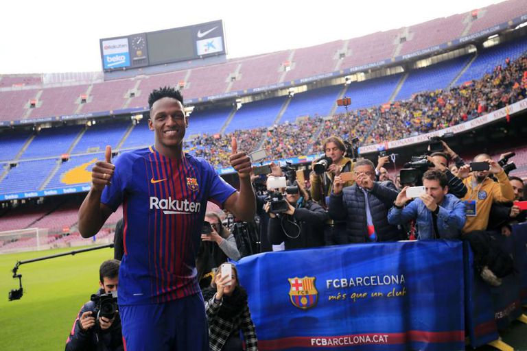 Yerri Mina contou que se sentia tranquilo apesar da demora para que sua contratação pelo Barcelona se concluísse. No entanto, quando seu tio e representante, Yair, avisou-lhe que ela já era jogador do clube catalão, ele pôs para fora toda a tensão acumulada. “Ele me disse para fazer as malas, mas eu já as tinha preparado. Pulei da cama de tanta felicidade. Meu pai, minha mãe, minha namorada, todos ficaram arrepiados”, disse o central, de 1,95m, primeiro colombiano a jogar pelo Barcelona. Neste sábado, 8.552 torcedores fizeram a recepção a Mina. Logicamente, não faltaram bandeiras de seu país de origem. “É uma coisa histórica, um colombiano no Barcelona”, destacou um torcedor colombiano.
