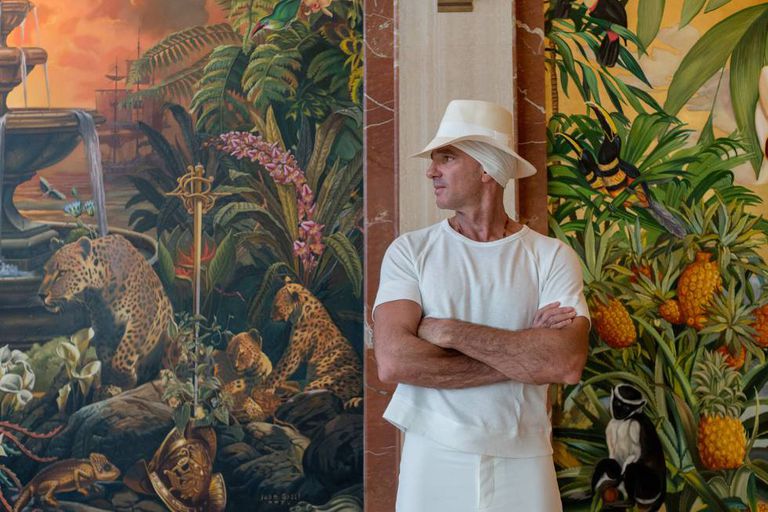 Por um mundo distinto transita Alan Faena. Vestido informalmente mas de um branco alvíssimo, o empresário argentino se senta em um terraço no pátio de seu hotel, decorado com obras de superestrelas como Jeff Koons e Damien Hirst, e murais de inspiração tropical pintados como afresco por seu compatriota Juan Gatti. A decoração foi assinada pelo cineasta Baz Luhrmann e sua mulher. Em 2015, Faena renovou este exuberante edifício dos anos quarenta próximo ao mar, em Miami Beach, seu segundo projeto após o modelo original que fundou com sucesso nas docas de Puerto Madero, em Buenos Aires. “Minha missão consiste em despertar lugares adormecidos e esquecidos”, afirma. Um ano mais tarde, completou com o Faena Forum, um centro multidisciplinar de arte projetado por Rem Koolhaas e dirigido por sua ex-mulher, Ximena Caminos. “Eu não costumava vir aqui. Escolhi Miami quando descobri a possibilidade de estar sempre a 10 metros das férias que uma pessoa sempre sonha em ter”, diz Faena enquanto aponta para a cor turquesa do mar que se abre diante de seus olhos.