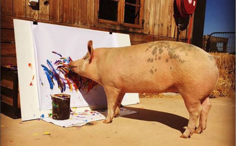 ‘Pigcasso’, a porca que pinta quadros de arte abstrata, e os vende por mil euros
