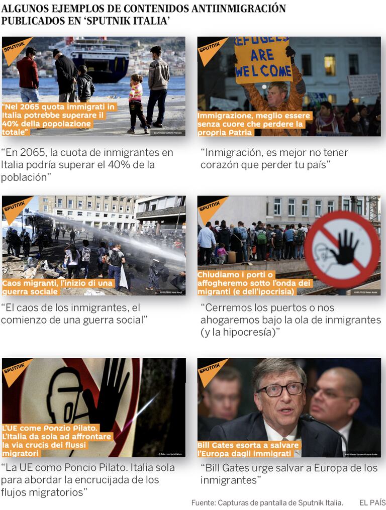 “Sputnik e RT se tornaram uma fonte a mais para esses eleitores radicalizados que procuram qualquer desculpa para conseguir provas de que os imigrantes são maus”, disse ao EL PAÍS Eleonora Tafuro Ambrosetti, pesquisadora do centro de Estudos Políticos Internacionais do Instituto Milão.