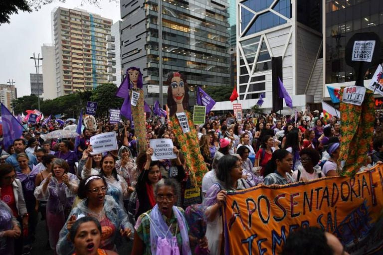 O protesto maior juntou milhares de pessoas na Avenida Paulista de São Paulo sob slogans como “Mulheres sem medo de lutar”. Lá houve gritos e faixas não só contra o machismo e o feminicidio, mas também contra o Governo Temer e a falida reforma da Previdência. “Temer sai, aposentadoria fica”, diziam várias das faixas dos manifestantes. No Rio, uma forte chuva não impediu o protesto no centro da cidade, também com críticas ao Governo Temer. A policia da capital fluminense aproveitou o 8 de março para deflagrar a Operação Alvorada Feminina, na que foram presos, segundo o jornal O Globo, 39 suspeitos de atos de violência contra a mulher.