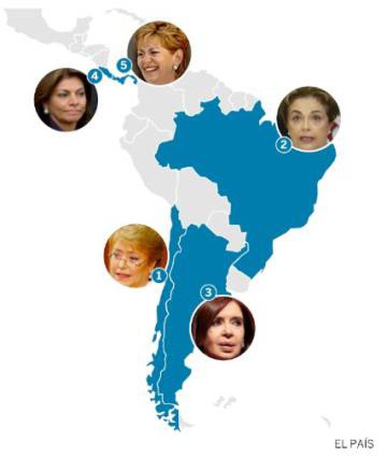 A primeira mulher latino-americana eleita presidenta nas urnas foi a nicaraguense Violeta Barrios de Chamorro em 1990, quando venceu o líder da Frente Sandinista Daniel Ortega, atual presidente do país. Chamorro era viúva do jornalista e líder da União Democrática de Libertação (UDEL), Pedro Joaquín Chamorro, opositor à ditadura de Anastasio Somoza e que foi assassinado em 1978. Foi seguida pela panamenha Mireya Moscoso, que governou entre 1999 e 2004 – período em que os Estados Unidos devolveram ao país a soberania do Canal do Panamá –. E em 2006 Bachelet chegou ao Chile, pediatra, filha de um general torturado que morreu em uma prisão de Pinochet e ex-ministra da Saúde e de Defesa. Sua liderança sofreu altos e baixos. Bem cotada no panorama internacional após essa primeira etapa, esteve à frente da agência das Nações Unidas especializada na mulher (ONU Mulheres).