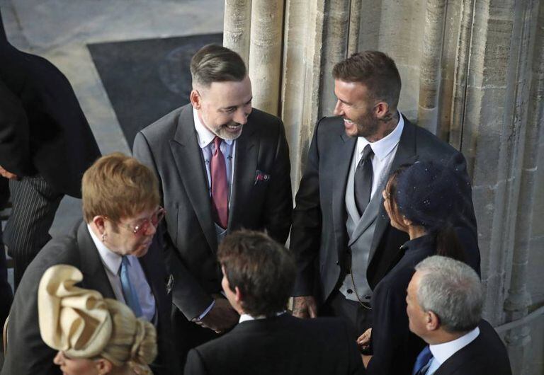 O outro grande power couple convidado foi o formado por David e Victoria Beckham, embora tenha provavelmente escolhido um mau momento para aparecer – justo depois dos Clooney, o que eclipsou bastante sua chegada. A estilista exibia um vestido azul escuro – mesma cor que usou no casamento de William e Kate – e sapato de salto alto vermelho. Já o ex-jogador desta vez deixou em casa sua medalha da Ordem do Império Britânico; no casamento anterior, ele foi criticado por usá-la do lado errado do peito.