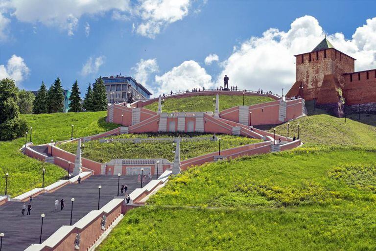 Conhecida como Gorky na era soviética, fica a menos de quatro horas de trem de Moscou. Essencial: seu Kremlin, uma imponente fortaleza do século XVI com quatro portões e 13 torres, e a escadaria Chkalovskaya, em forma de oito e com 560 degraus à beira do Volga.