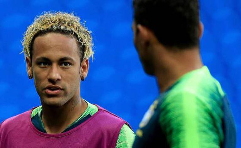 Neymar tingiu o cabelo de loiro para a Copa do Mundo. No sábado, durante um treinamento que antecedeu a estreia seleção brasileira contra a Suíça — que terminou em empate de um a um —, tiaram esta foto.