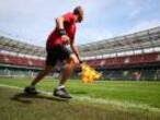 42 minutos. O Uruguai toca a bola no meio de campo. Os sauditas não se empenham para tomar a bola.