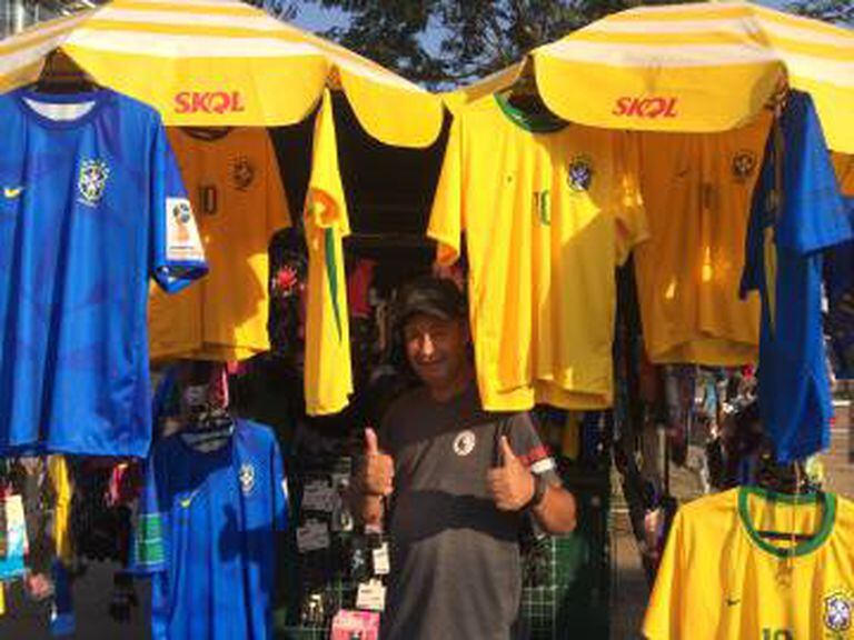 O camelô também conta que nesta Copa já desenvolveu uma tática para saber qual camiseta vai vender: basta olhar pra cara e altura do cliente. Se for mais velho, vai pedir a do Gabriel Jesus ou a do Philippe Coutinho. Se for criança, vai querer a do Neymar, já que elas não estão nem aí para o técnico Juan Carlos Osorio, que tachou o atacante brasileiro de péssimo exemplo para los niños. “É que a criançada não conhece a inveja ainda, o Neymar é o melhor do time, vai falar mais o quê?”, diz o comerciante. A Jaqueline Batista, por exemplo, é uma que se animou com as vitórias. Em um outro camelô ali pertinho, diz que ficou empolgada com o jogo contra o México e resolveu comprar outra camiseta: “Essa é azul, que é pra mudar o look”.