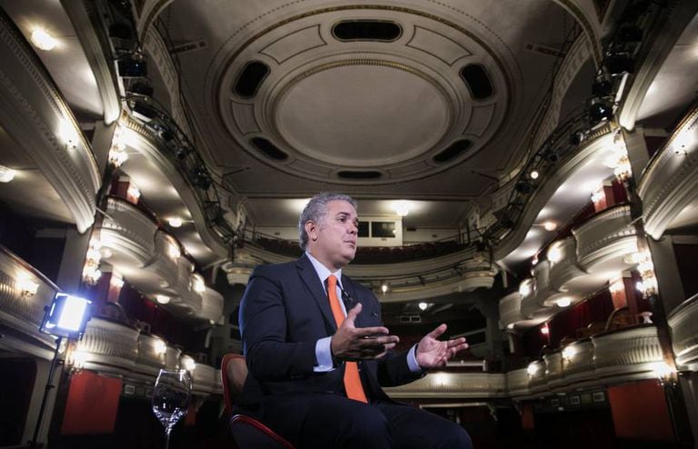 Duque, nascido em Bogotá, receberá o bastão de Juan Manuel Santos em 7 de agosto, uma semana depois de seu 42º aniversário. Promete corrigir os acordos de paz com as FARC alcançados por seu antecessor "sem despedaçá-los", pretende unir um país dividido depois de mais de meio século de conflito armado e busca dissipar as preocupações de uma parte da sociedade que desconfia do ex-presidente Álvaro Uribe, seu principal mentor. Esta entrevista foi realizada na segunda-feira no palco do Teatro Alcázar, em Madri, a pedido de sua equipe.