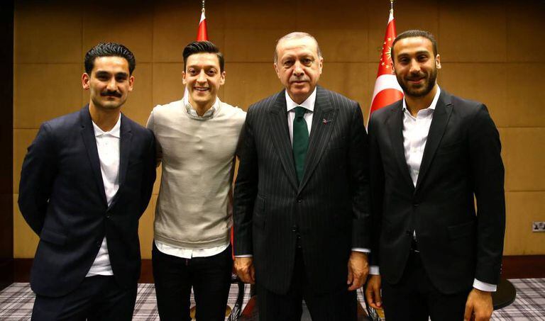 "Tenho dois corações, um alemão e outro turco. Nasci e fui educado na Alemanha. Por que há gente que segue sem aceitar que sou alemão?", questiona o meia, que jogou no Schalke 04 e no Werder Bremen, depois no Real Madrid e atualmente milita no Arsenal, da Inglaterra. Além de referência técnica na seleção, Özil também representava a imagem de integração na Alemanha do maior grupo de cidadãos de origem estrangeira, os turcogermânicos, com três milhões e meio de pessoas – metade deles conserva seu direito de voto na Turquia.